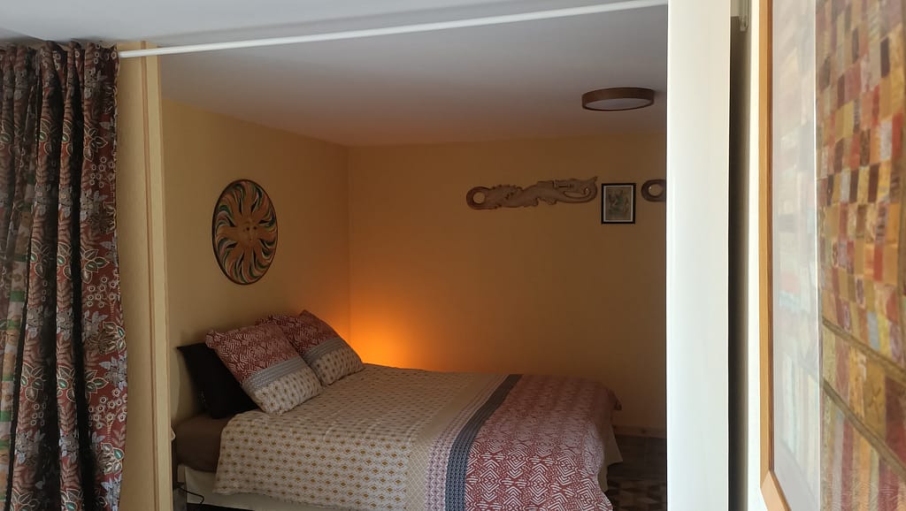 Deux types d’accueil sont possibles : des chambres d’hôtes classiques avec salle de bain privative et petit-déjeuner inclus, et une chambre minimaliste à tarif réduit, avec options à la carte
